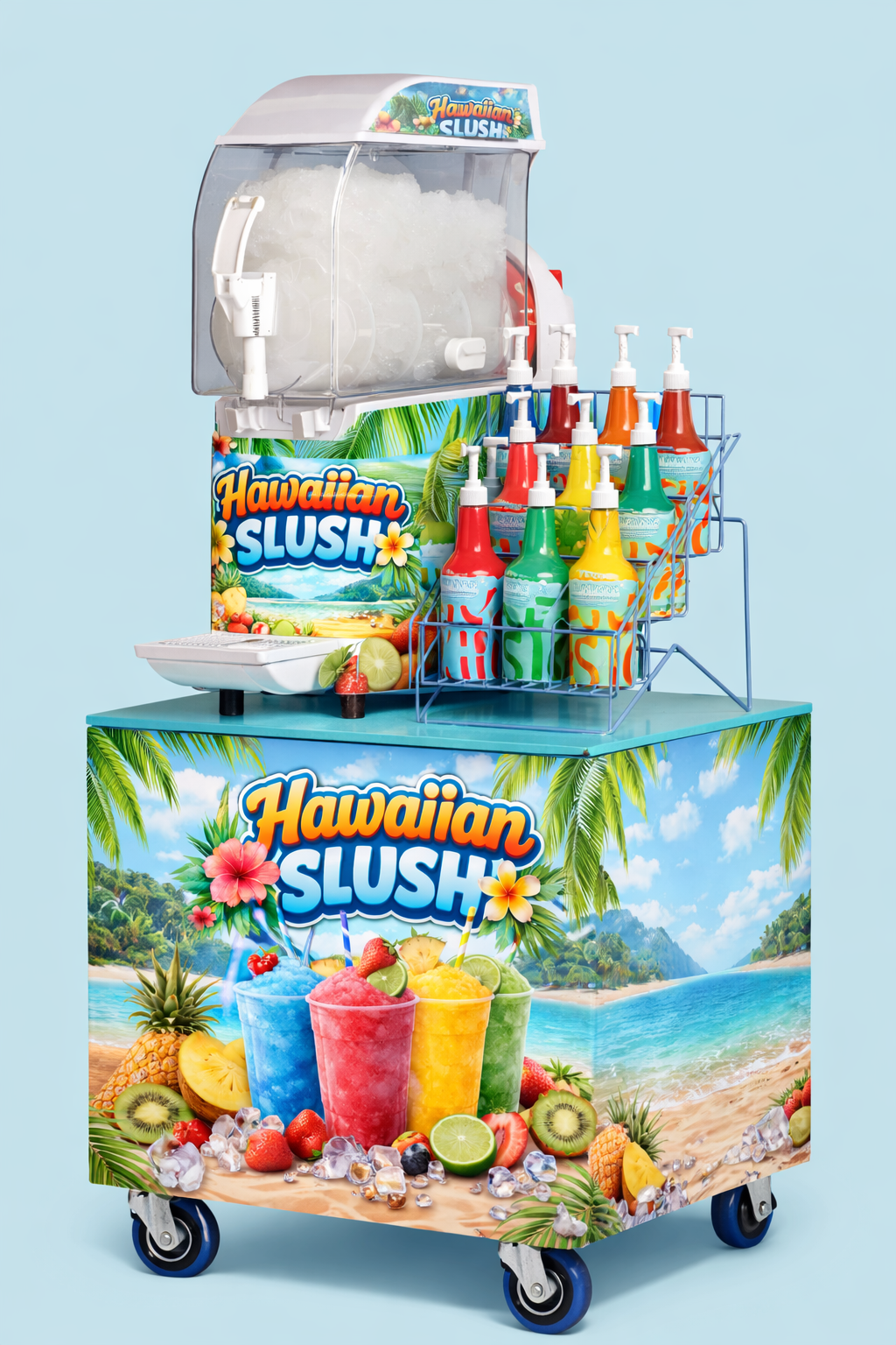 Med Hawaiian Slush får du et komplett og gjennomført slush-konsept klart til bruk. Alt du trenger for å komme i gang følger med: